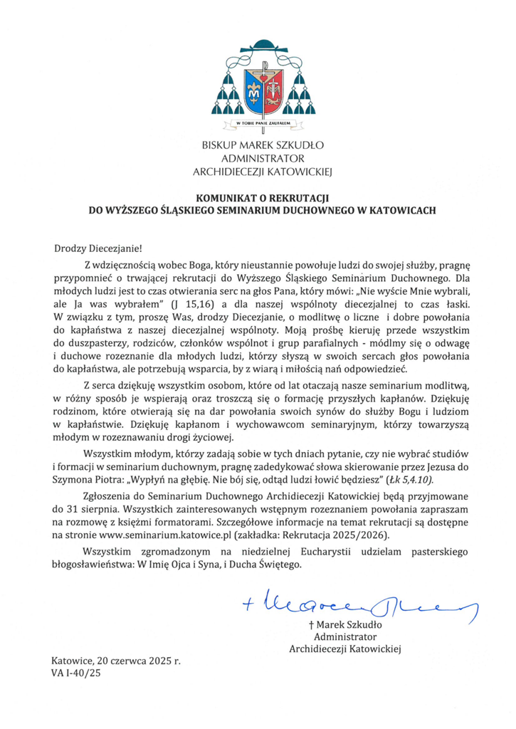 W dniu 30 maja 2025r. o godz. 16.00 w naszym kościele została odprawiona Msza św. w trakcie której młodzież z naszej parafii przyjęła Sakrament Bierzmowania. Sakramentu udzielił biskup Marek Szkudło, administrator Archidiecezji Katowickiej. Sakrament Bierzmowania przyjęło 10 dziewcząt oraz 7 chłopców.
